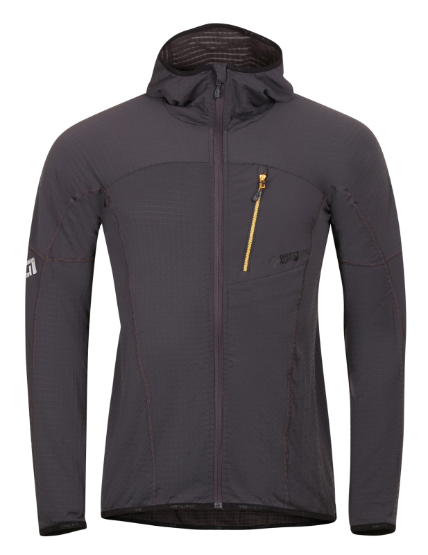 Sie wird aus dem äußerst leichten (145 g/m2) Funktionsmaterial Technostretch® Grid Fleece hergestellt.Dessen Innenstruktur besteht aus kleinen plastischen, einzeln angeordneten Quadraten.Dadurch wird in dem Bereich zwischen Körper und Material eine Schichtvon zirkulierender Luft aufrechterhalten, die für eine angenehme Einsatztemperatur sorgt undgleichzeitig überschüssige Körperfeuchtigkeit abführt.Eine Selbstverständlichkeit sind die hohe Elastizität des Materials in vier Richtungen undausgezeichnete Packmaße.Das einfache und schlichte Design ist zur Erzielung eines minimalen Gesamtgewichtsnur mit den notwendigsten Elementen ausgestattet:einer passgerechten, ausreichend tiefen Kapuze, um den Bereich von Kopf, Hals und Stirn abzudecken,und zwei Reißverschlusstaschen.Der anatomisch funktionelle Schnitt orientiert sichan der natürlichen Form des menschlichen Körpers und dessen Bewegungen beim Sport.Der Raglan-Schnitt der Ärmel schafft Bewegungsfreiheit beim Klettern undihre ausreichende Länge gewährleistet, dass die Handgelenke auch dann abgedeckt sind,wenn beide Arme nach oben gestreckt werden.Der Rückenteil ist verlängert, um auch die untere Rückenpartie abzudecken.Eine universelle Jacke für sämtliche Sportarten auf allen Niveaus und ohne Limits.