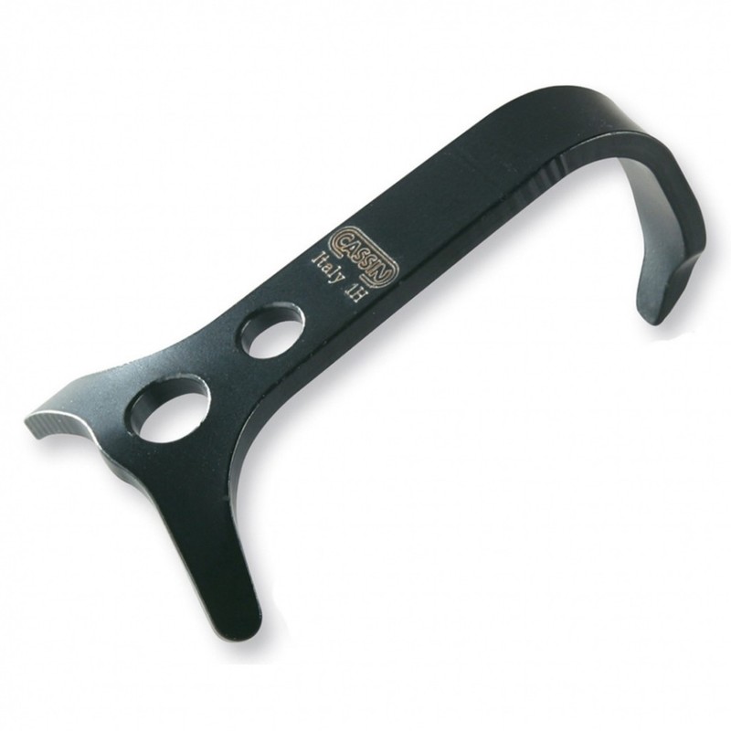 Die große Basis dieses Hakens macht ihn besonders stabil gegen Verdrehen, was gerade beim technischen Klettern erhöhte Sicherheit schafft. Durch geschicktes Einhängen des Hooks in der Materialschlaufe des Klettergurts, kann unbeabsichtigtes hängenbleiben vermieden werden. Die Doppellöcher lassen eine idividuelle Fixierung des Schlingenmaterials zu.