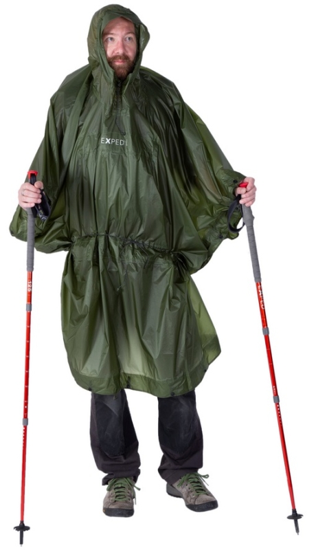 Viele weitere Nutzen: Als Regenauffang-Tuch, Verletzten-Trage, Hilfs-Segel, Schwimmhilfe mit Gras gefüllt, als Zelttarp und Zeltunterlage und selbst als Hängematte wenn gut an den schmalen Seiten abgebunden.Ideal in Kombination mit den Exped-Chaps, den wasserdichten Beinlingen, die sehr leicht, bequem und preiswert sind (siehe auf folgenden Seiten).Mehrere Ponchos lassen sich zu einem grossen Tarp oder Giebelzelt aneinanderkoppeln.Auch ein Pyramidenzelt lässt sich errichten, indem in die Kapuze ein Paddel, ein Trekkingstock oder dergleichen eingesteckt und das Tarp so abgespannt wird.Genial klein verpackt wird der Poncho in seiner eigenen Brusttasche. An der Bauchschnur kann er nun um Schulter oder Hüfte getragen werden.Alle Nähte sind doppelt geführt und wasserdicht bandverschweisst. Beim Bivy-Poncho Extrem wird mit aufquellendem Baumwoll-/Polyesterfaden genäht und eine speziell entwickelte Tunnel-Naht (pat. pend.) verwendet, die auch unter Zug die Nahtlöcher nicht öffnet.Bei Wind lässt sich die Bauchkordel umschnüren und verhindert so das Flattern der Ponchoseiten. Sie dient zugleich als Tragkordel des gepackten Ponchos.Auf fast jede Körpergrösse einstellbar durch Druckknopfleisten vorne und hinten - ob mit oder ohne Rucksack. Der Bivy-Poncho Extrem ist dazu mit leichteren Omnigrip-Klettstreifen ausgestattet.Doppel-Druckknöpfe bzw. Omnigrip-Klettstreifen entlang des gesamten Saums erlauben das dichte Schliessen des Ponchos.8 Ösen in den Ecken und Mitten (beim Bivy Poncho zusätzlich 4 Druckknopf-Laschen) ermöglichen es, die Ponchos in vielen Varianten als Dach oder Windschutz aufzuspannen.Wasserdichte, grosse Innentasche, die zugleich als Packtasche und Tragetasche für den Poncho dient.Perfekt anatomisch geschnittene Kapuze mit Schnurabschluss, so dass sie sich mit dem Kopf mitdreht und somit jederzeit ungehinderte Sicht ermöglicht. Deckendes Kapuzenschild, damits bei Regen nicht den Kragen runterläuft